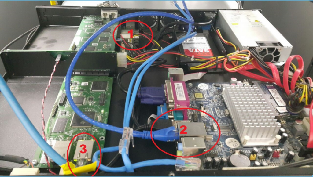 2-) Retirar os dois cabos que estão no ponto 1 da imagem;